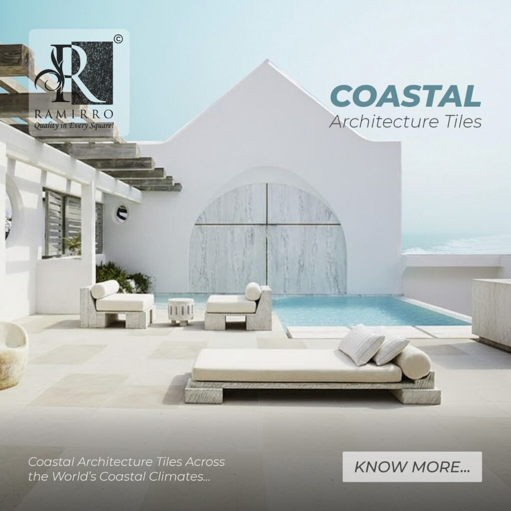 Coastal architecture is not just a look; it is a climate response built around salt air, humidity, UV exposure, wind load, and constant moisture cycles that quietly attack every surface of a home over time. When these forces are ignored and designers simply copy “beach house aesthetics” from images, materials such as paints, metals, low grade stone, or unsuitable tiles can fade, crack, corrode, or lose adhesion far earlier than in inland conditions, leading to costly failures and renovations. Coastal architects therefore work performance first and beauty second, selecting robust envelopes, detailing for drainage and ventilation, and relying on tiles as a silent protective layer that resists water absorption, salt crystallization, and abrasion, so the home can survive decades of coastal weather while still delivering the relaxed, light filled style people love.